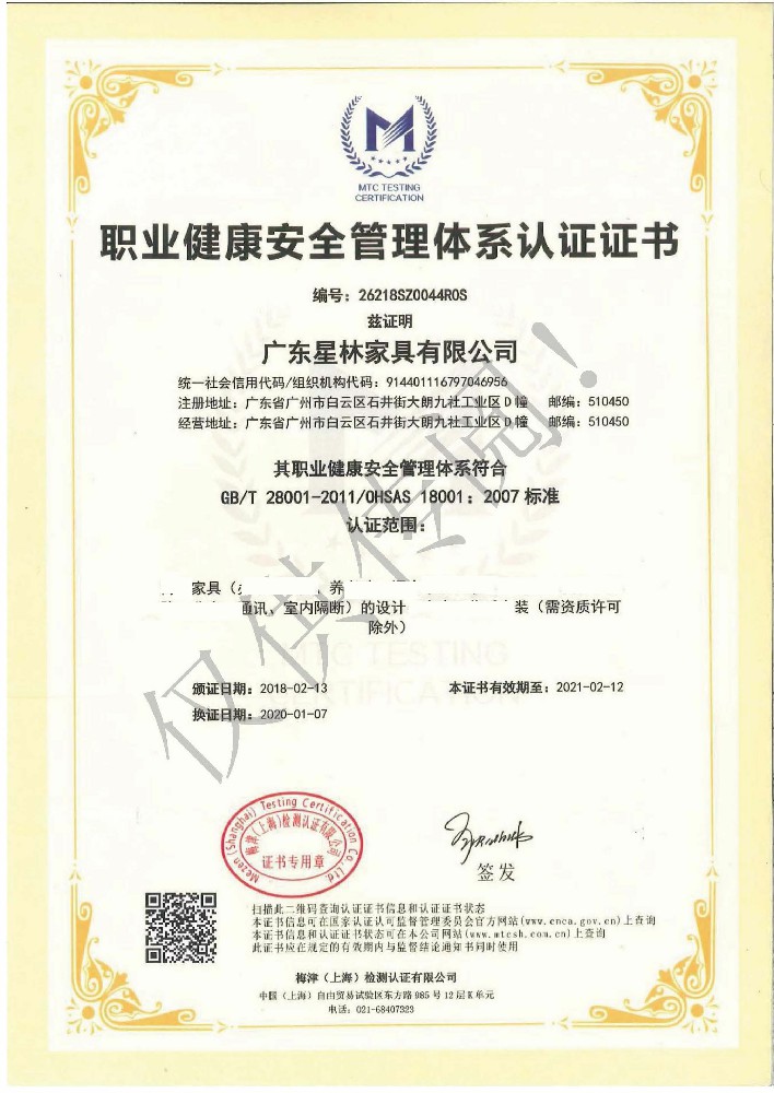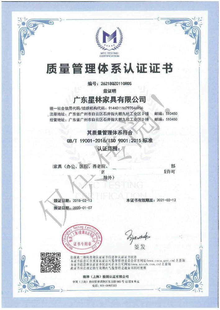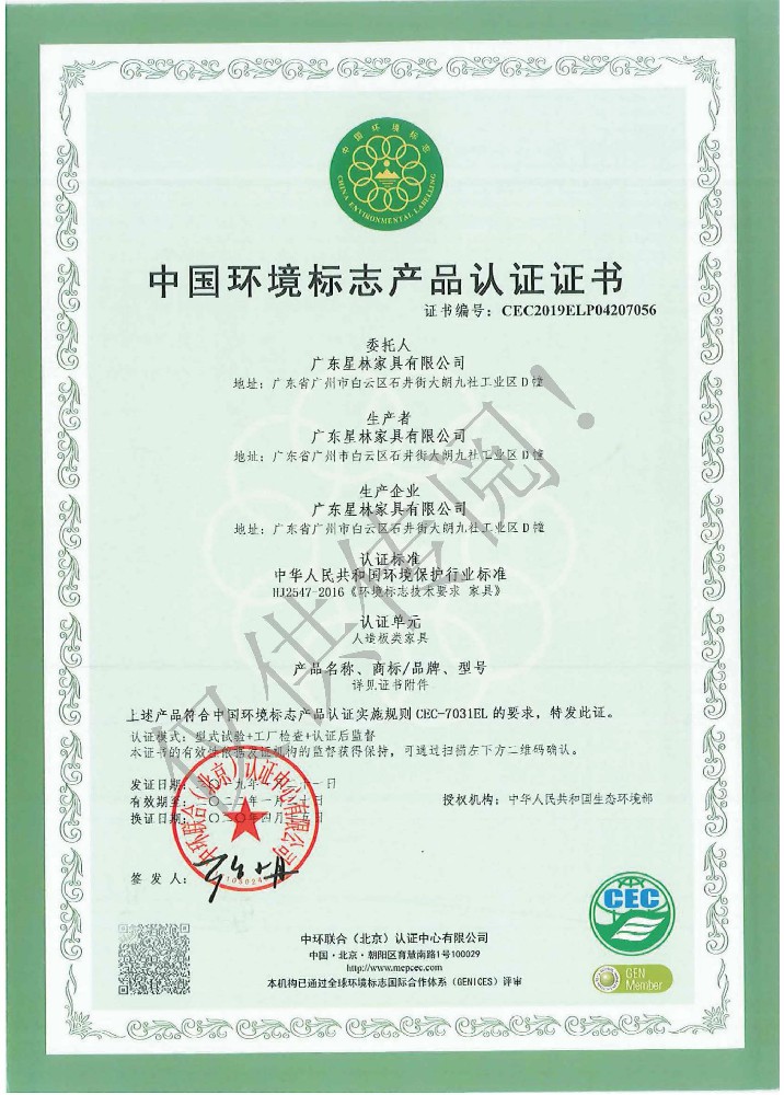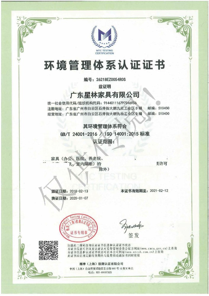 廣東星林家具有限公司創(chuàng)建于家具盛世之期,專業(yè)致力于辦公家具、醫(yī)療家具、養(yǎng)老家具的開(kāi)發(fā)、設(shè)計(jì)、生產(chǎn)。公司率先通過(guò)ISO9001質(zhì)量管理體系認(rèn)證和ISO14001環(huán)境管理體系認(rèn)證及職業(yè)健康安全管理體系認(rèn)證,從而獲得了中環(huán)聯(lián)合(北京)認(rèn)證中心有限公司頒發(fā)的“中國(guó)環(huán)境標(biāo)志產(chǎn)品認(rèn)證證書(十環(huán)認(rèn)證)”等。